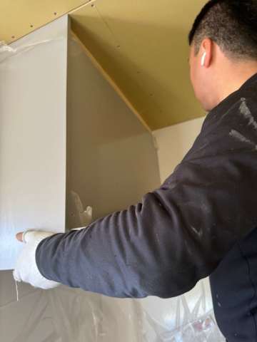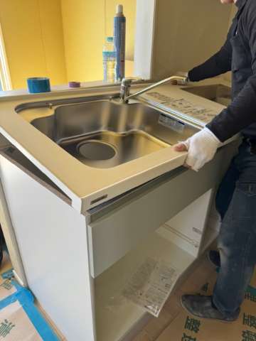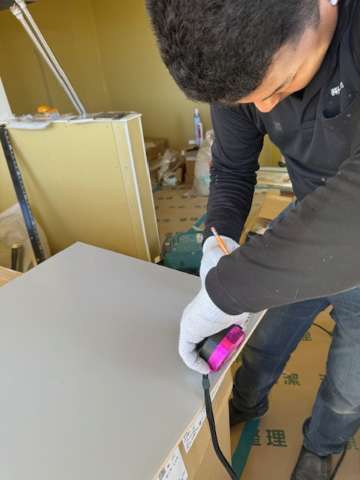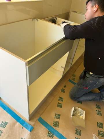 設置したキッチンとパネルの隙間をコーキングで埋めて仕上げて完成です✨✨