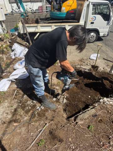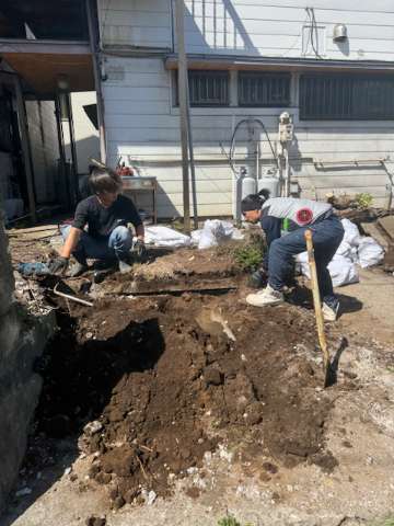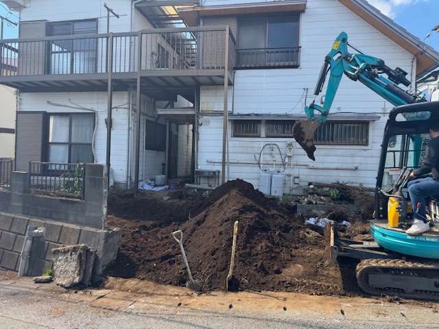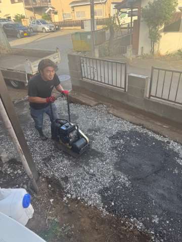 残土処分して、砂利敷きをしてセメントを流していきます。