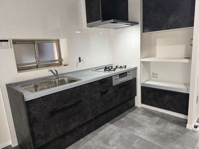 以前は吊戸棚が取付されていましたが、今回は収納スペースを設けました✨