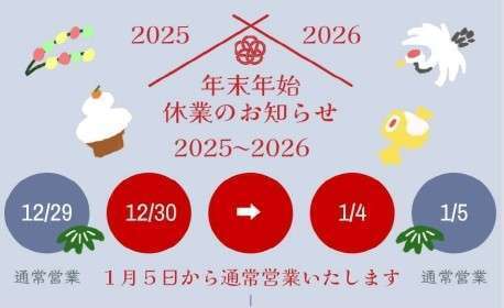 12月30日~1月4日まで年末年始休業とさせていただきます。