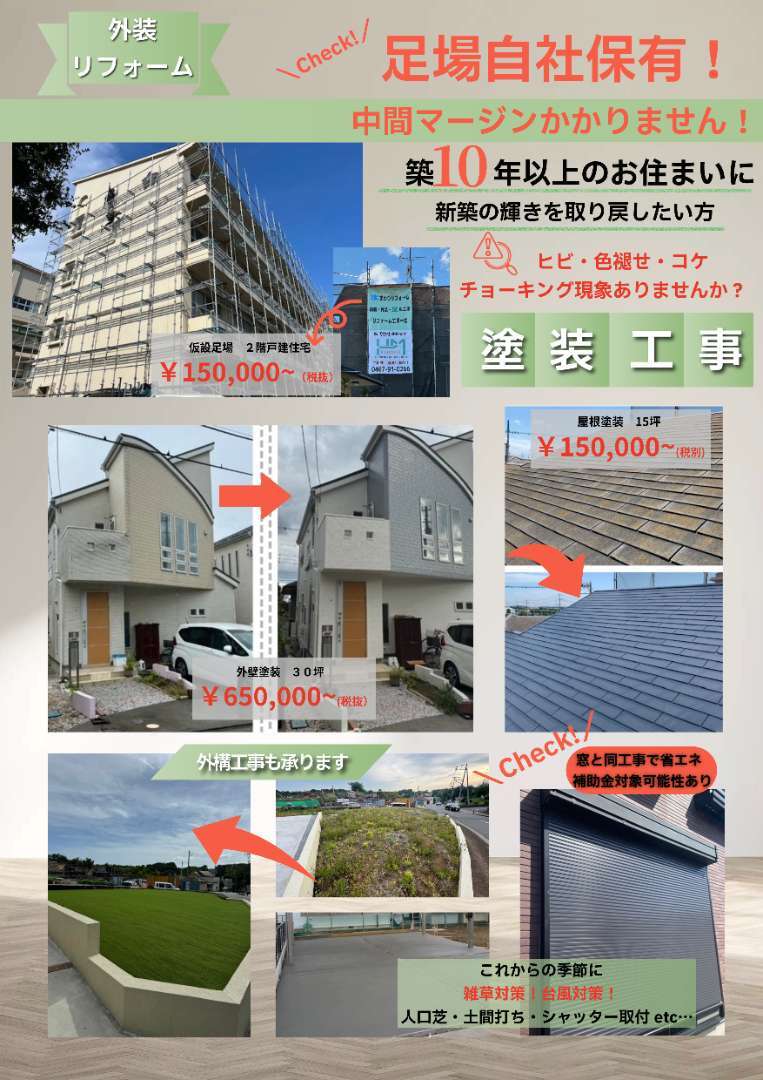 裏面は外装リフォームを記載しています。